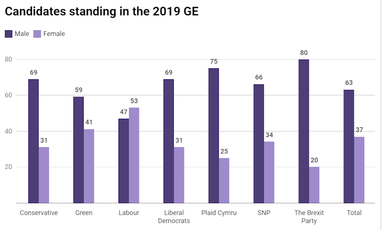 Yet there are important variations between parties when it comes to how many women they selected to stand. I’ve analysed the data for 2019 and found that Labour became the first party in UK history to offer the electorate more female candidates (53 percent of the total) than men (47 percent). This represented an increase of 11 percentage points over previous elections.